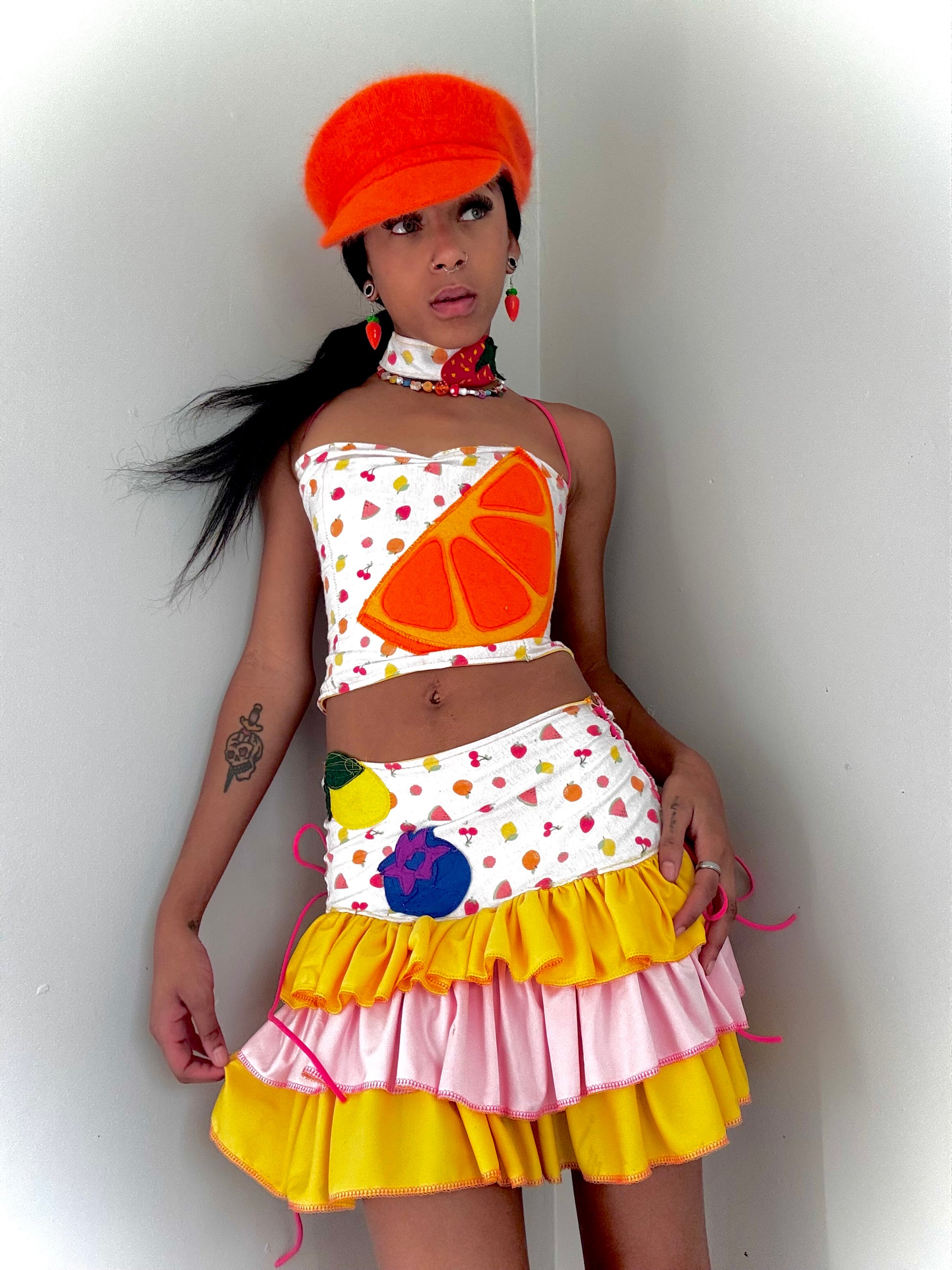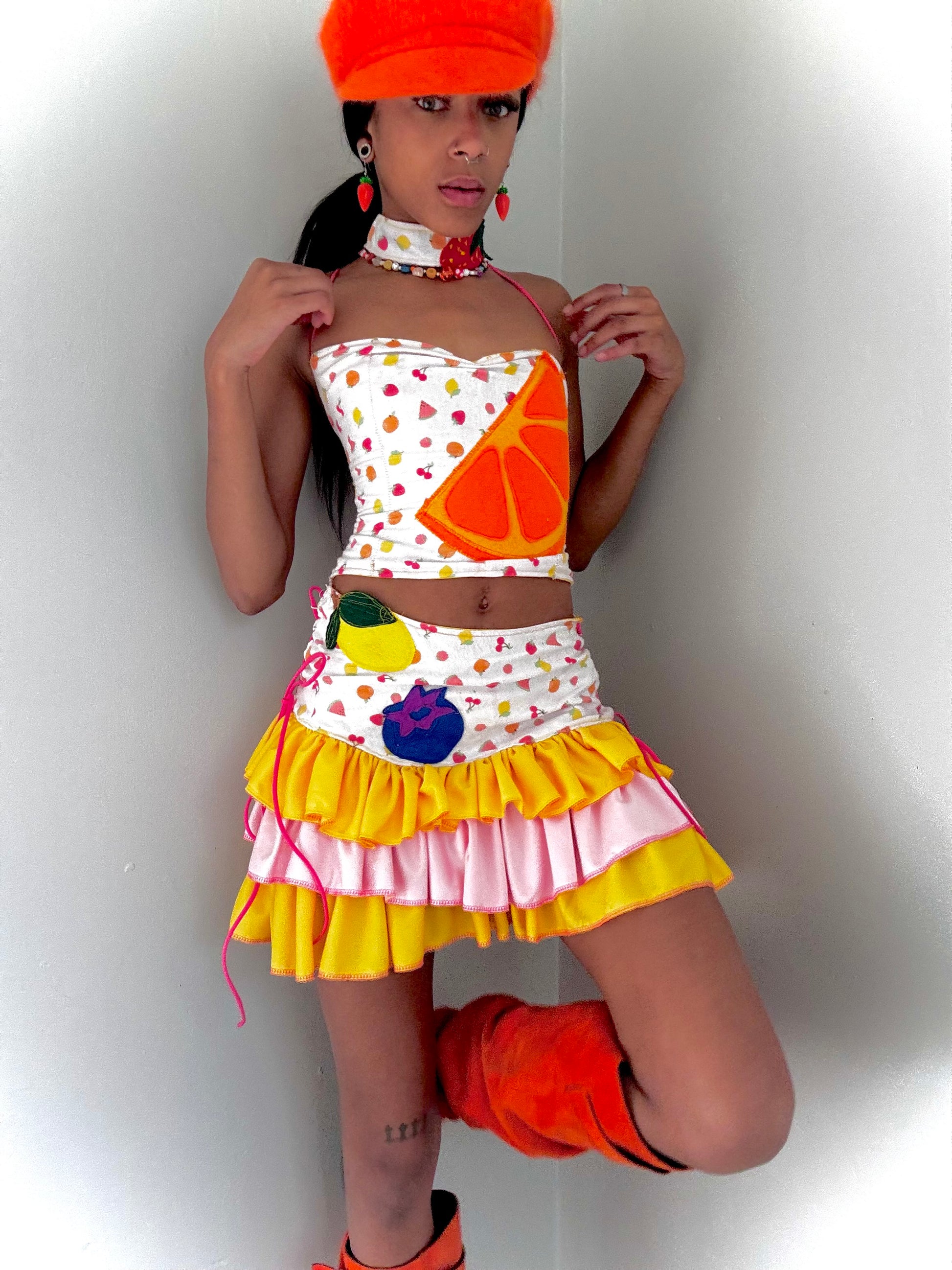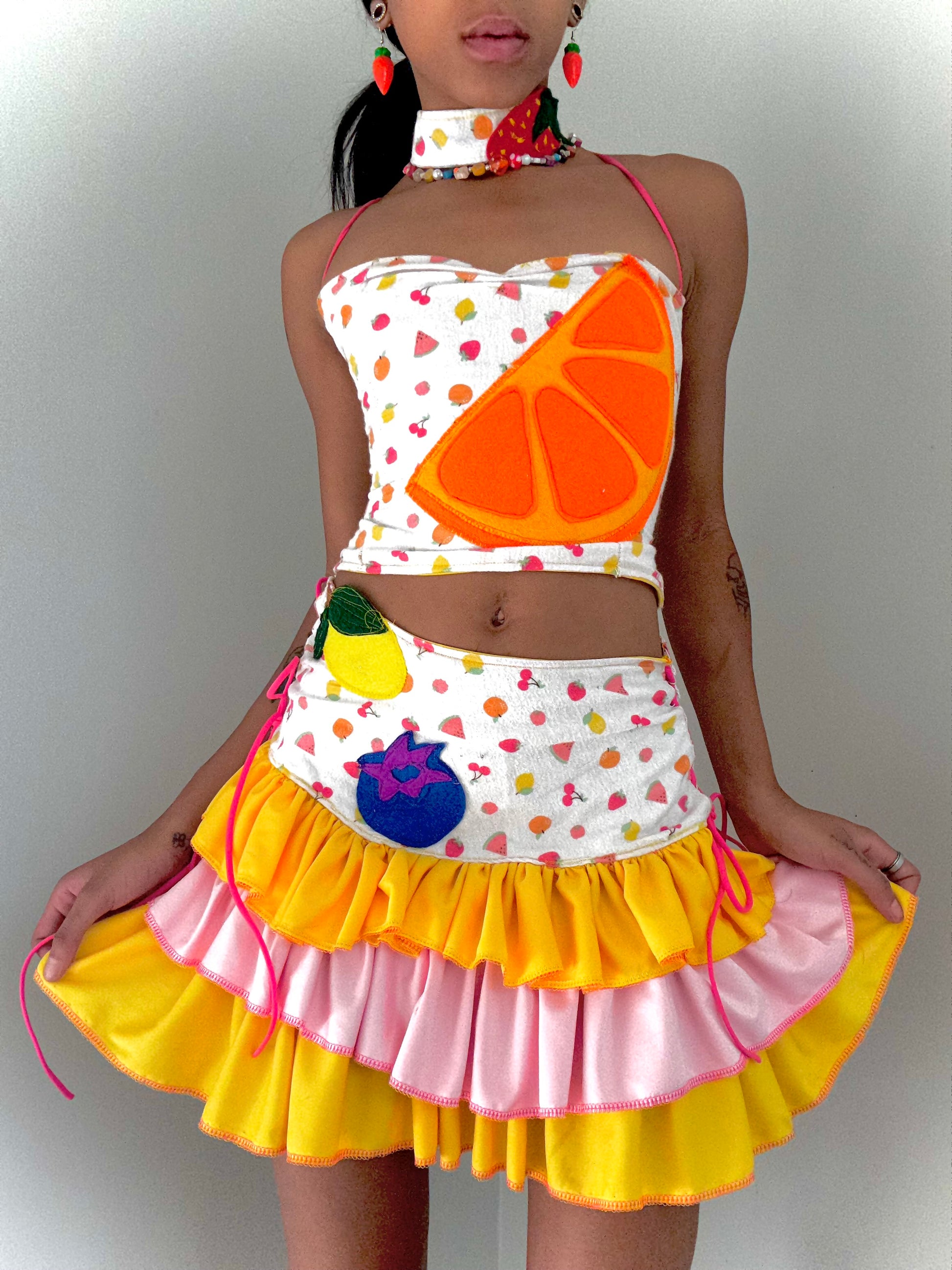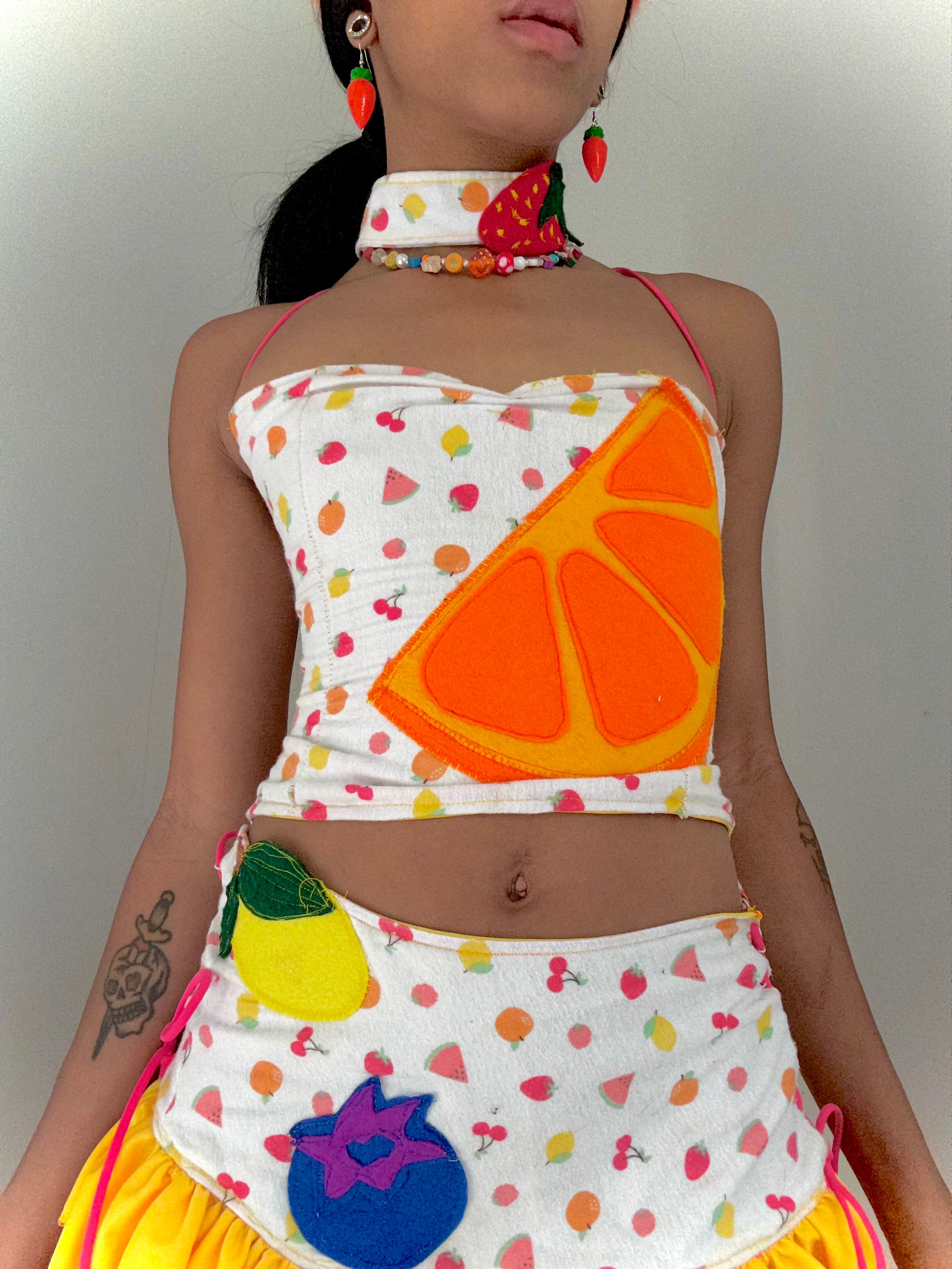 Upcycled new born blanket turned into a sexy fruity three piece set with handmade felt decals !